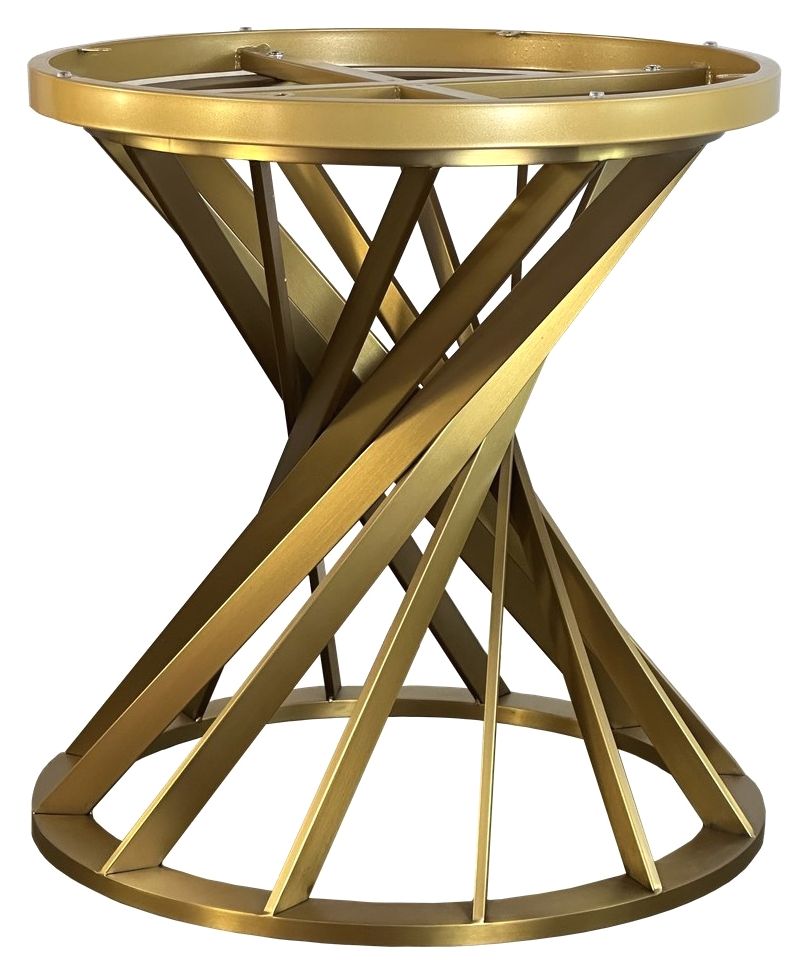 Подстолье дизайнерское металлическое для гостиной, кафе, ресторана, отеля, салона красоты, лобби, лаундж-зоны. Может использоваться кaк готовый кофейный столик, либо кaк основание для столешницы. Подстолье золотое из полированной матовой нержавеющей стали с покрытием нитрид титана золотого цвета. Высота 72 см, основание d35 см, диаметр верхней части 50 см, вес 16 кг. Рекомендуемый размер столешниц: D60, D70, D80, D90 см.