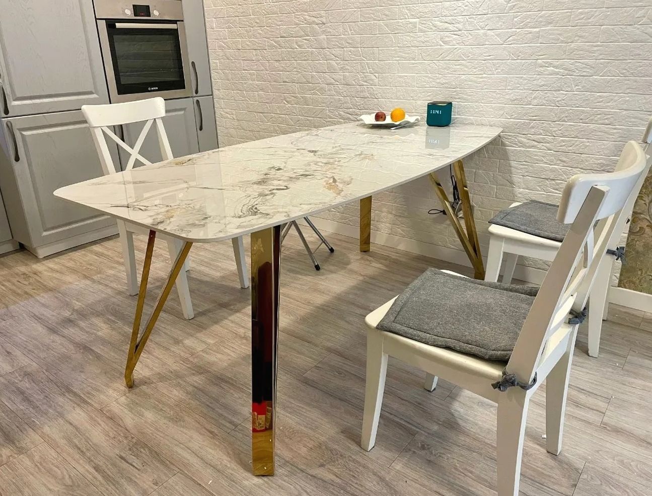 кг. Рекомендуемые размеры столешниц: 90х90, 100х100, 120х80, 130х90, 140х90, 150х100, 160х100, 180х100, 190х100, 200х100, 210х100, 220х100, 240х100 см. Подстолье реплика итальянской модели.