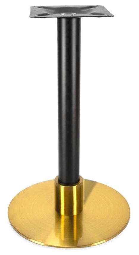 Дизайнерское подстолье лофт с золотым основанием для кафе, ресторана, бара, кофейни, салона красоты, гостиной и кухни. Основание из нержавеющей матовой стали золотого цвета, труба металлическая черная. Размеры: Высота 72 см, основание круглое d45 см, верхний крепеж 45х45 см. Подстолье подходит для круглых и квадратных столешниц: 60х60, 70х70,