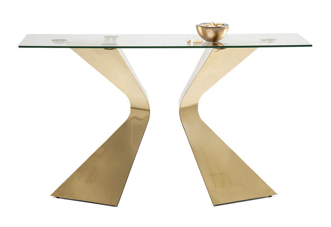Дизайнерский стол-консоль для прихожей, гостиной, спальни, отеля, клуба, гостиницы, бутика, ювелирного магазина, салона красоты, ресторана, кафе, офиса, приемной, спа-салона, бизнес-центра. Столешница изготовлена из искусственного мрамора белого цвета. Консоль с золотым основанием из глянцевой нержавеющей стали. Размеры: Длина 120 см, Ширина 40 см, Высота 85 см, Вес 30 кг. Консоль для интерьера в стиле Арт-Деко, современная классика, модерн. Консоль производства Китай.