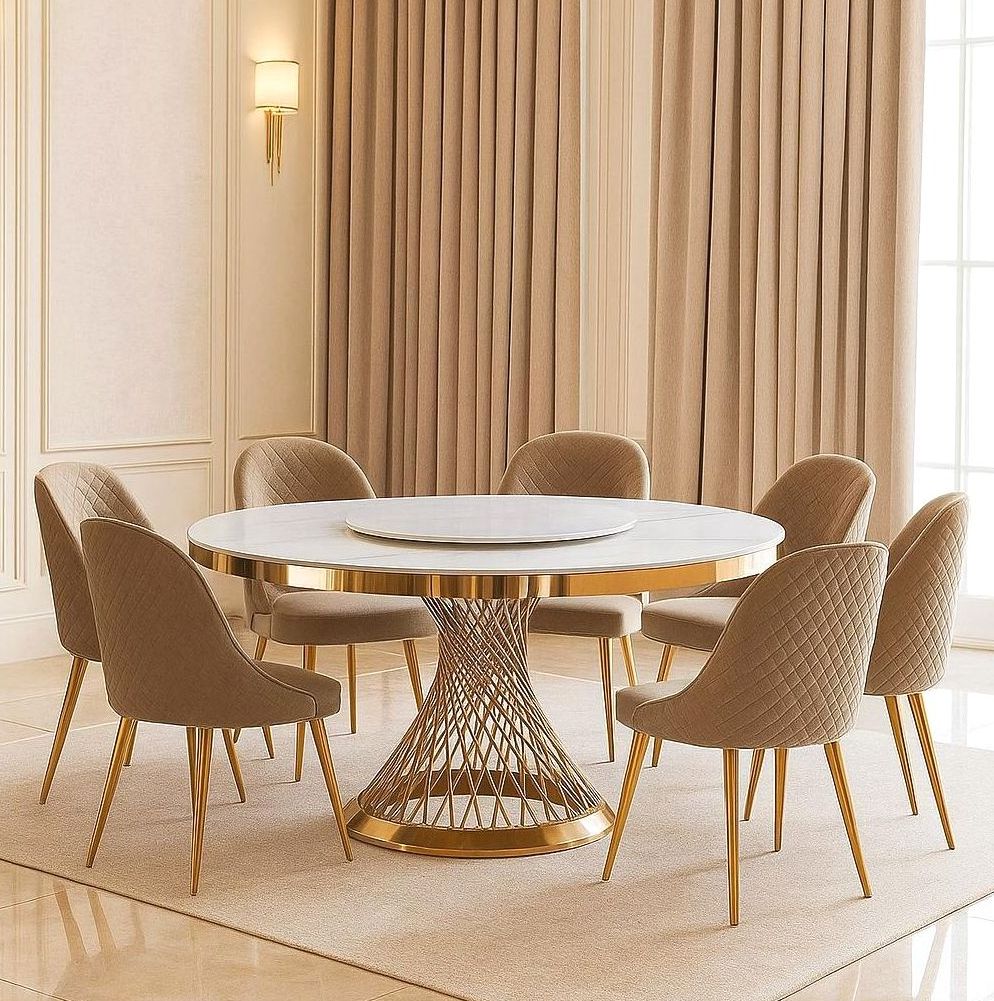 Стильное золотое подстолье для гостиной, кухни, ресторана, бара. кафе, салона красоты, отеля, гостиницы, офиса. Подстолье из полированной нержавеющей стали с покрытием нитрид титана золотого цвета. Высота 74 см, диаметр верхней части 70 см, диаметр нижней части 70,5 см, вес 18 кг. Рекомендуемый размер столешниц: 100x100, 110x110, 120x120, 140x140, D90, D100, D110, D120, D140, D150 см.