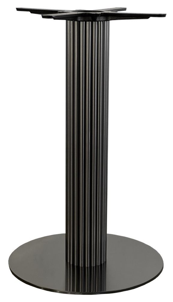 Современное металлическое подстолье для кафе, бара, ресторана, пиццерии, бистро, кофейни, бургерной, фудкорта. Труба и основание черное. Вставка из матовой нержавеющей стали (нитрид титана). Высота 73 см, основание d45 см, вес 12 кг. Рекомендуемый размер столешниц: D60, D70, D80, 60х60, 70х70,80х80 см.